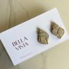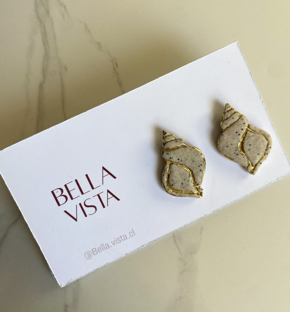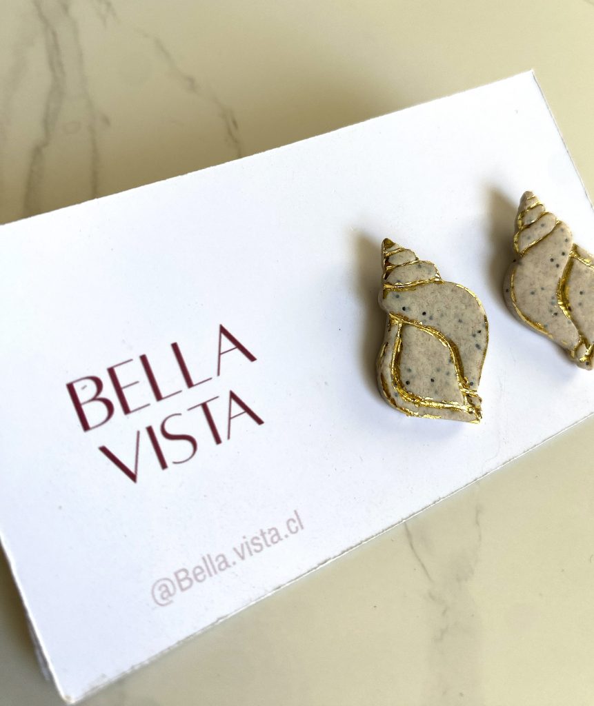 Hechos a mano en arcilla polimérica que imita la arena de playa, con delicados detalles dorados. Sutiles y elegantes, con un toque marino.