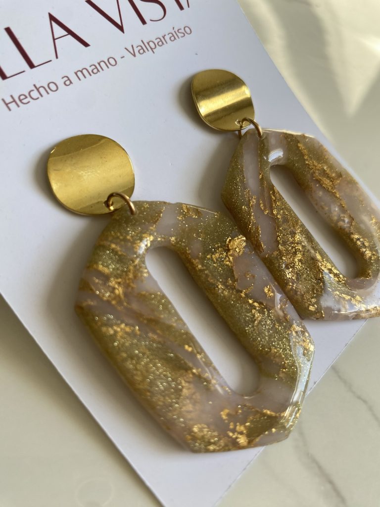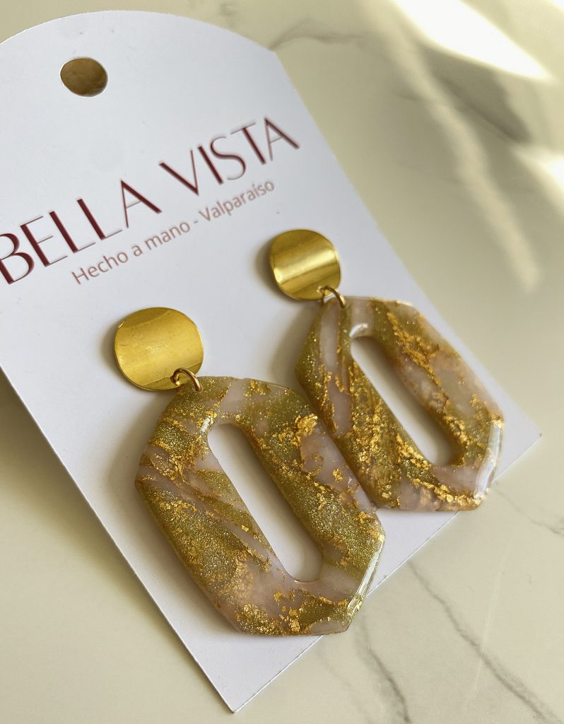 Hechos a mano en arcilla polimérica con efecto marmoleado, un diseño moderno que destaca con elegancia.