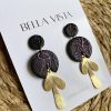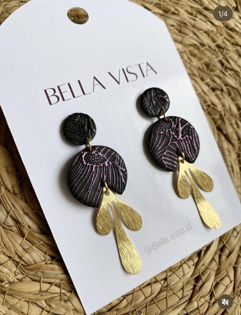 Aros en arcilla Polimérica con relieve en tornasol, con detalle en dorado.