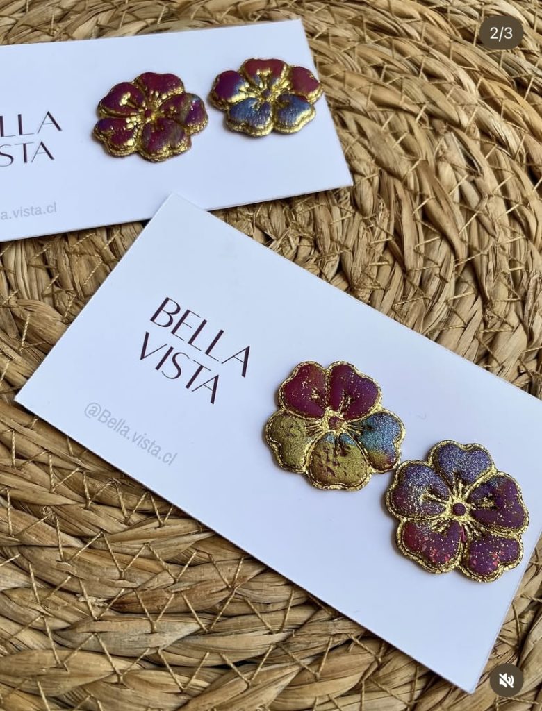 Delicados aros en forma de flor, hechos a mano en arcilla polimérica. Pequeños, livianos y perfectos para acompañarte en tu día a día. Su acabado tornasol y detalles dorados los hacen sutiles pero únicos. 🌸