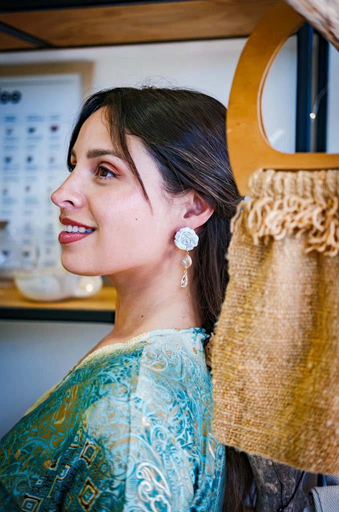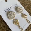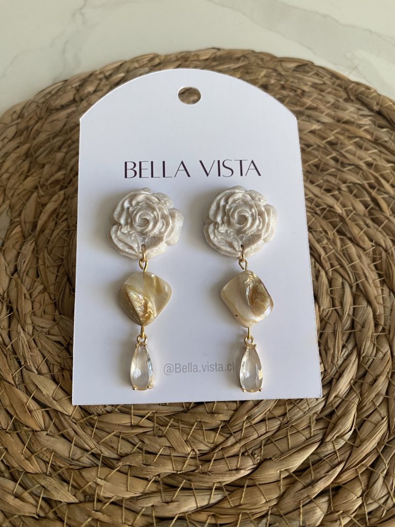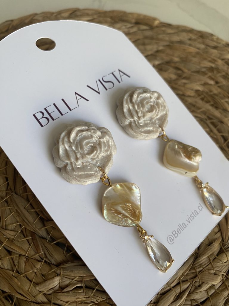 Aros hechos a mano en arcilla polimérica, con acabado nacarado y detalles dorados. Con movimiento, ideales para el día a día o complementar un look más producido.
