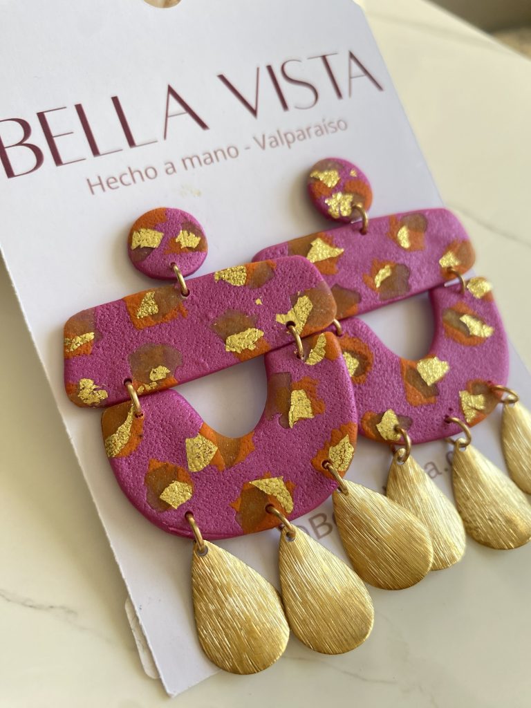 Aros llamativos y llenos de personalidad, en tonos fucsia con detalles dorados y formas geométricas. Un diseño vibrante que aporta luz y movimiento a cualquier look. ✨
